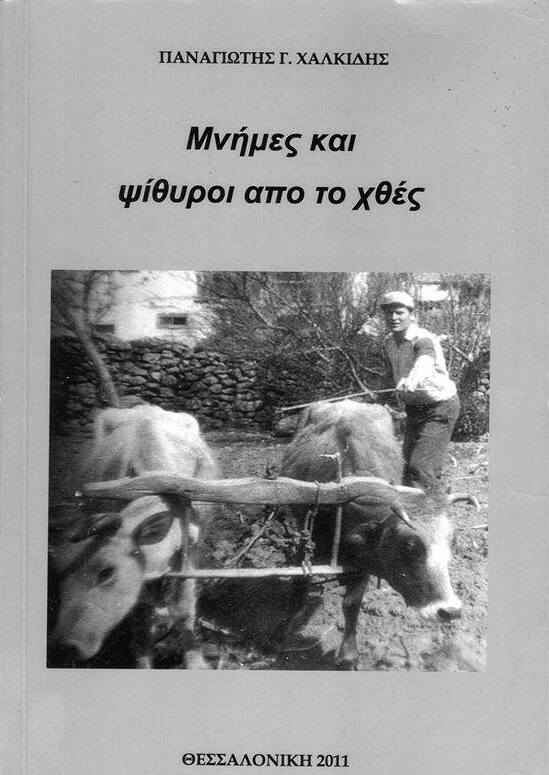 Με το βιβλίο «ΜΝΗΜΕΣ ΚΑΙ ΨΙΘΥΡΟΙ ΑΠΟ ΤΟ ΧΘΕΣ», φωτογραφίζει ο συγγραφέας το χωριό του και μέσα από αυτό, τα χωριά της υπαίθρου, όπως ήταν αυτά τον παλιό καιρό. Το βιβλίο απευθύνεται κυρίως στις νεότερες γενεές και στις μελλοντικές που έρχονται, για να γνωρίσουν τον τόπο των προγόνων τους, τον τρόπο ζωής τους με τα επαγγέλματα και τις παραδοσιακές ασχολίες τους. Εκείνος ο παραδοσιακός τρόπος ζωής που είχε τις ρίζες του βαθιά στους αιώνες, άρχισε να φθίνει πριν την δεκαετία του ’70 και σε λίγο καιρό αποκόπηκε από το παρελθόν, εξ αιτίας της μετανάστευσης πολλών κατοίκων στο εξωτερικό και της μετακόμισης άλλων στα μεγάλα αστικά κέντρα της Θεσσαλονίκης και της Αθήνας, κυρίως όμως εξ αιτίας της αναπτυσσόμενης τεχνολογίας η οποία ανέτρεψε ότι ίσχυε μέχρι τότε, αλλάζοντας ριζικά τον τρόπο ζωής και μαζί μ’ αυτήν κάθε παραδοσιακή ασχολία και επάγγελμα. Η καταγραφή των επαγγελμάτων και η απεικόνιση με ακρίβεια της θέσης που ασκούνταν, καθώς και η αναφορά άλλων θεμάτων του παρελθόντος, δίνουν με τον πληρέστερο τρόπο την εικόνα του χωριού στο παρελθόν. Αξιόλογη ενέργεια του συγγραφέα προς τον αναγνώστη είναι οι φωτογραφίες και οι εικόνες για κάθε επάγγελμα χωριστά, με την λεζάντα στο κάτω μέρος να εξηγεί τον τρόπο που λειτουργούσε για να γίνεται πιο εύκολα κατανοητό.